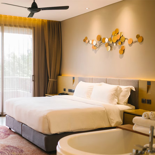 Studio Room is fitted with modern décor and contemporary furniture. The studio features a queen-size bed or two single beds. Each room contains a bathroom with eco-friendly bath amenities, television and central air-conditioning with individually controlled thermostats.